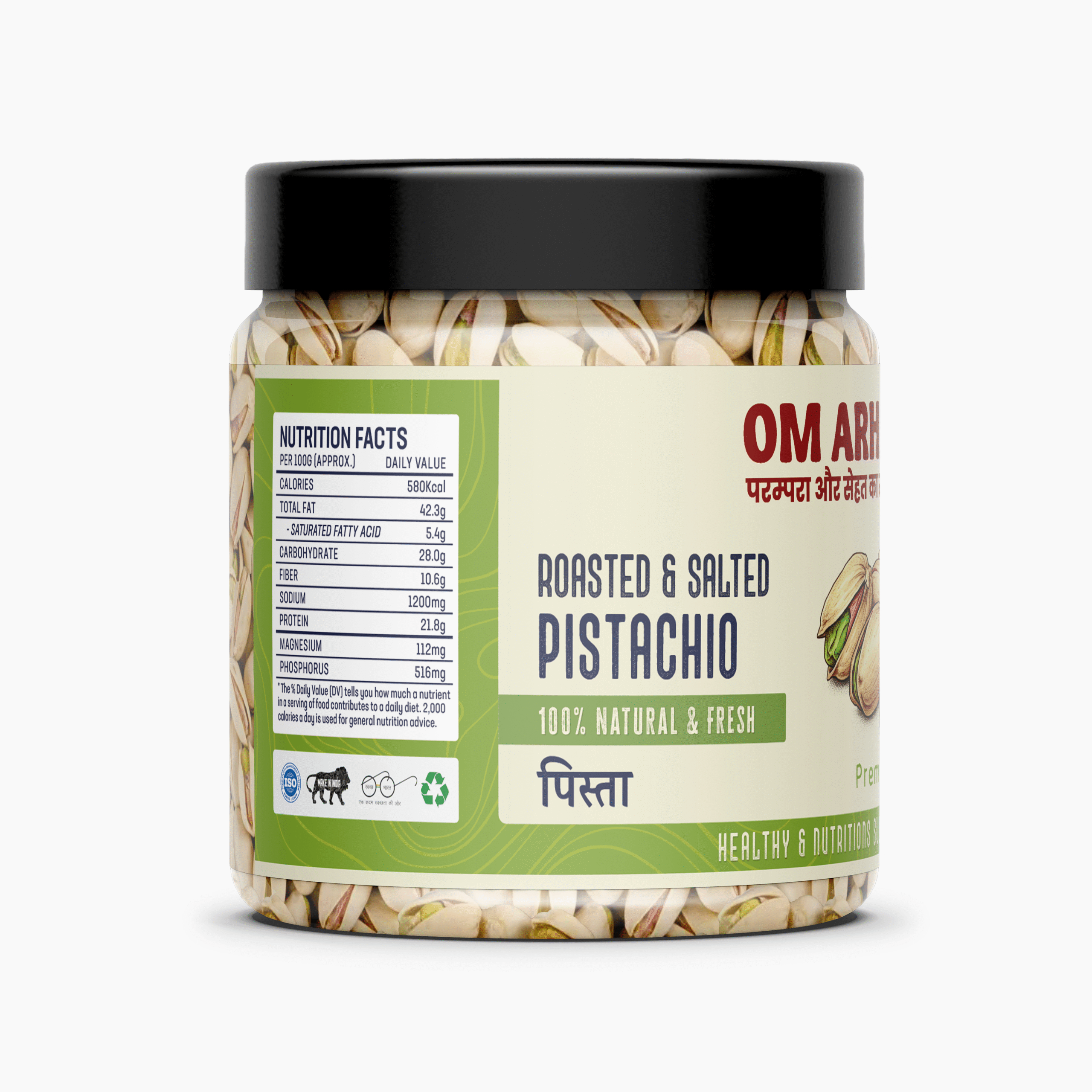 Whether you’re snacking at work, on a hike, or just satisfying evening cravings, Om Arhm Pista provides clean energy and nutrition without compromising on flavor. Their mild salt seasoning enhances the natural nuttiness while keeping sodium intake in check. Perfect for adults, kids, fitness lovers, and those following vegan, keto, or gluten-free diets.
